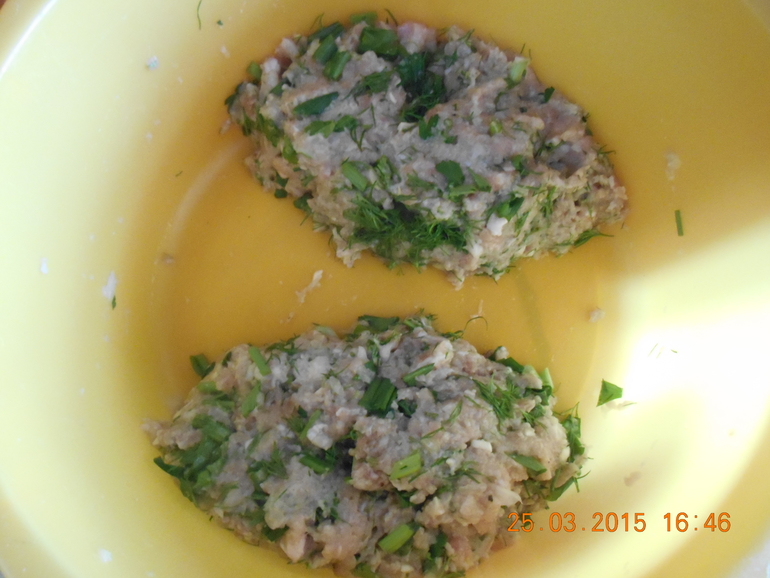 Ну и мясная-фарш,обжареный лук,зелень
