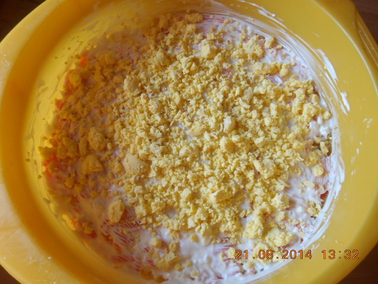 Кулинария2 банки консервов горбуша,8 средних картофелин,10 крутых яиц,4 отварные морковки,репчатый лук 2 штучки,Я сразу все делю пополам,белки отделить от желтков.Сначала слой горбуши (1 банка),размять вилкой,затем мелко наубленный лук,затем промазываем майонезом,затем тертая на крупной терке картошка 4 штуки,затем белки,тоже тертые,затем тертая морковка,затем руками раскрошенные 5 желтков.Далее опять повторяем-горбуша,лук,майонез,картошка,белки,морковка,промазываем майонезом,сверху желточки.Любимый салатик наш))