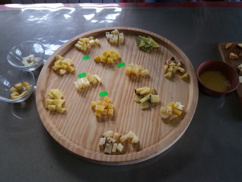 Экскурсия началась с пробы, наверное, более чем 20 видов производимого сыра. Мы основательно пополнили свой вкусовой багаж. Камамбер, Качакавала, Халуми, Гауда, Грюер, сыр с кофе, перцем, белой плесенью, на золе фруктовых деревьев... составили далеко не полный список порционных кусочков, поданных нам на дегустационных тарелках.