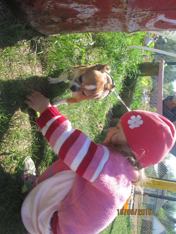 а это нам привезли собачку на неделю) Лиза с ней гуляла) и усердно кормила ее песком)