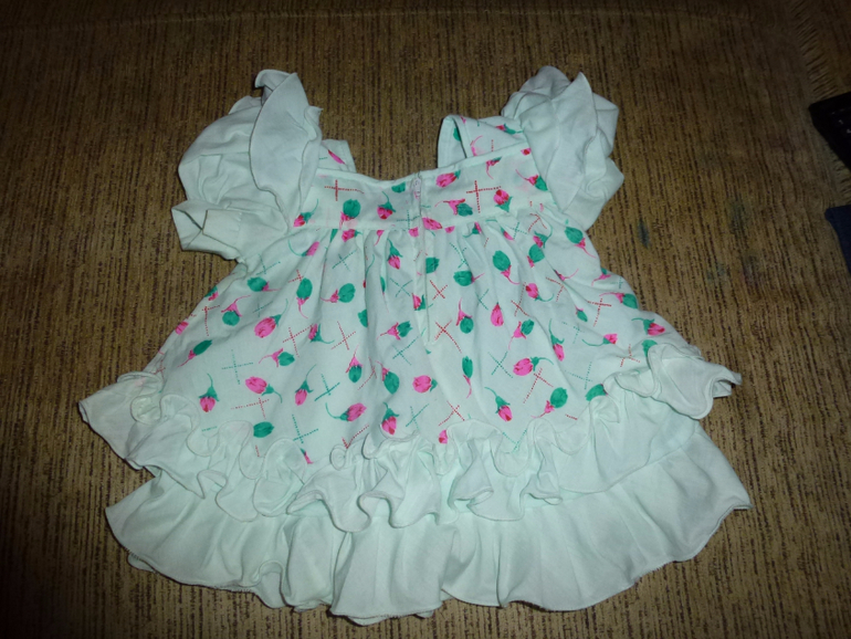 1. Платье р-р 68, мы одевали в 6 мес., думаю на 6-9 мес. б/у 1 раз - 150 руб.