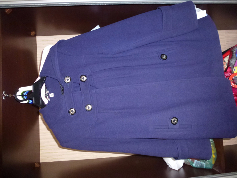 13. Пальто 60% шерсть 40% ПА темно-синий цвет (на фото вышел бледным), очень мягкое, б/у 1 сезон, носила при беременности до конца и после, сидело и смотрелось в обоих случаях отлично р. 46/164 - 2000 руб.