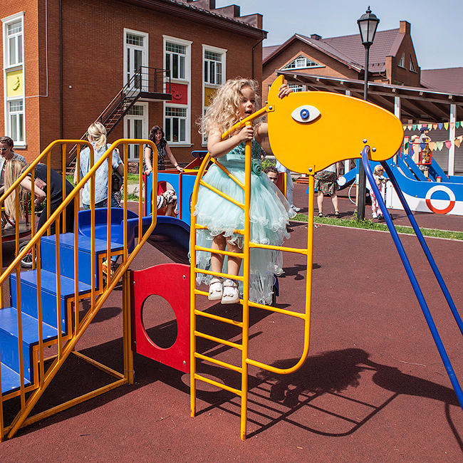В конце мая у нас случился последний день детского сада и праздник в честь окончания весны. Теперь нас ждет три месяца без сада и много-много развлечений. На фото Алиса на площадке около детского сада убежала подальше от праздника. Не любит она много шума и толпу.