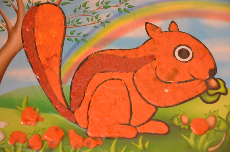 Было у нас еще много разных картин в этой технике. Но "выживших" осталось немного. Так как Настя любила сначала все приклеить, а потом таким же образом все отклеить обратно, если я не успевала вовремя "спрятать" шедевр.