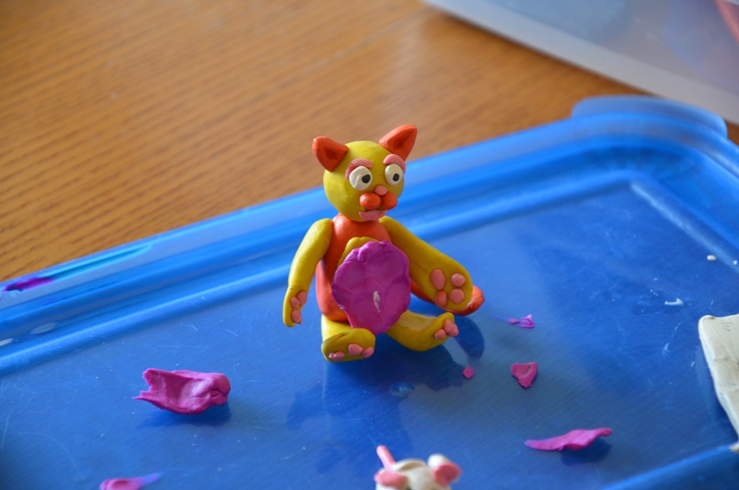А потом Настя вносить свои элементы))). Вот например, коту прилепила зачем-то розовую кучу, сказала, что он держит шляпу))