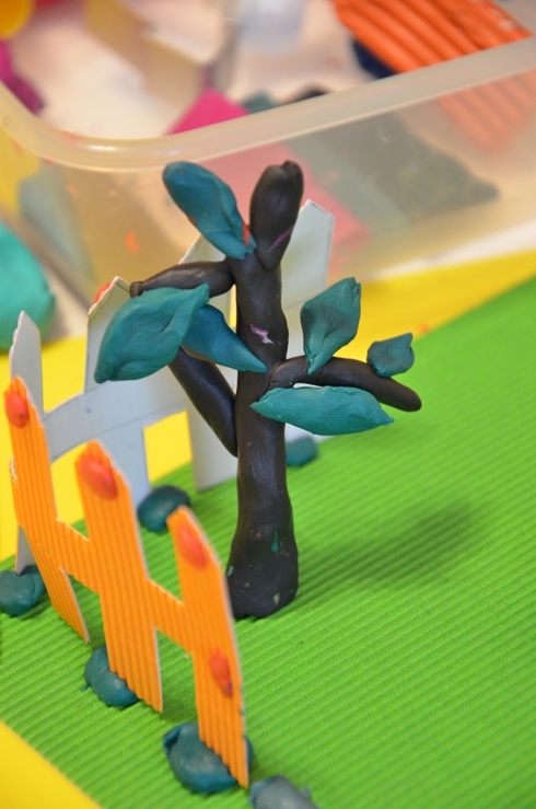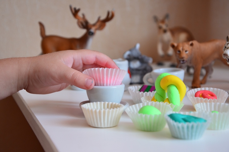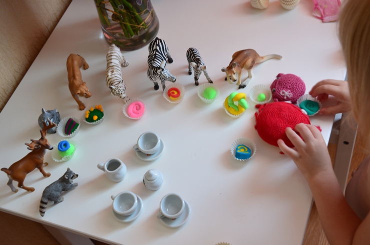 5. Сейчас пластилин у нас - любимый материал для ролевых игр. Готовим друзьям-зверятам и куклам "угощение", используем пластилин для изготовления "театральных декораций".