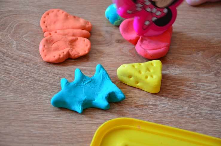 Настя лепила с моей небольшой помощью. Кусочек сыра, елочка, бабочка и сердечко