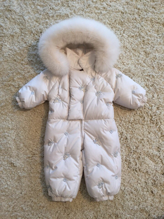 Комбинезон Manudieci р. 12мес. После одного ребенка. Белый с нежно -серебристым отливом. Сделана химчистка.Цена 7.600 руб