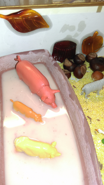 Хрюшки купаются в грязи (крахмал+вода)