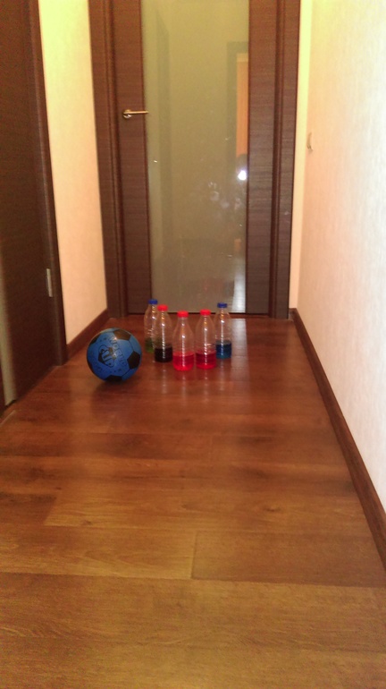 Целую неделю я аккуратно собирала бутылки из под молока (даже парочку спасла из рук мужа, который не терпит "мусора" дома и стремится все выкидывать), покрасила воду пищевыми красителями.....а Лев не оценил. Вообще. Теперь бутылочки ждут своего часа вдоль стеночки в коридоре.