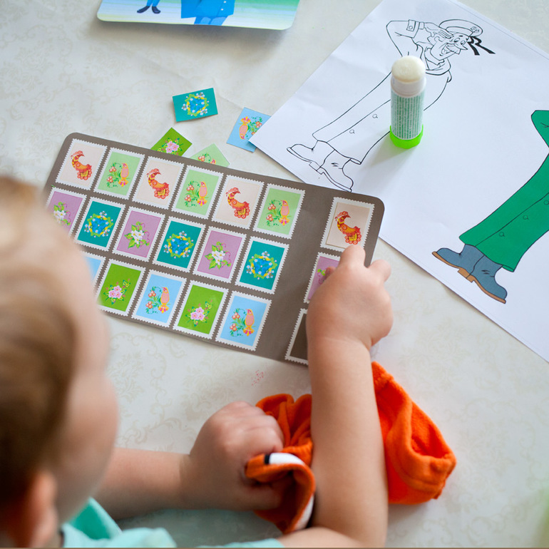 Затем Ваня был в роли почтальона. Правда сам решил написать письма друзьям и сам же их разнес. Самое интересное в этом задании было наклеивание марок. Облизывал их все до последней.