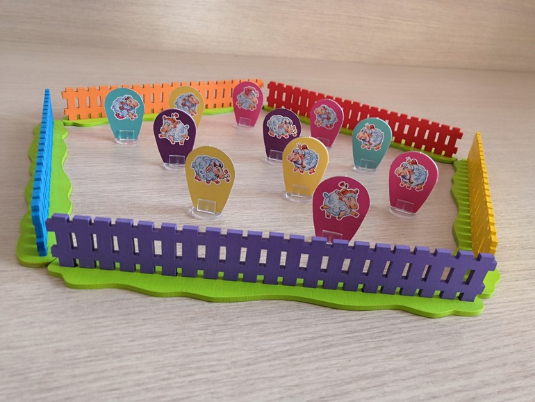 Выбираем персонажа, укладываем его спать на одной стороне поля, на другой же размещаем своих пять овечек. Между спящим и овечками пять заборов. Кубики в руки и вперед - к сладким снам победе!