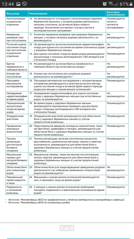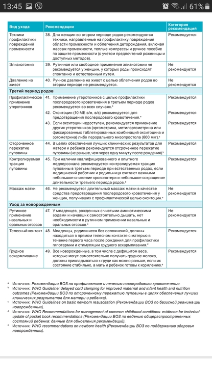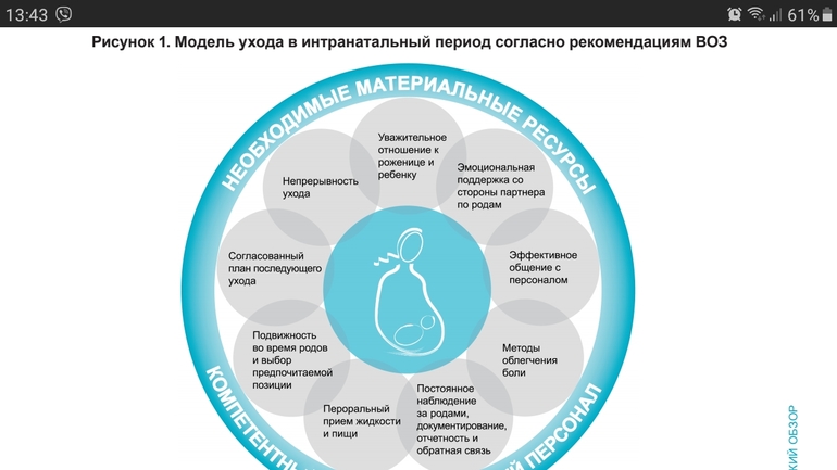 В этом документе «положительный опыт родов» определяется как желаемый результат для всех рожающих женщин, соответствующий их личным и социокультурным ожиданиям и представлениям или превосходящий их. Такой опыт подразумевает рождение здорового ребенка в безопасном окружении, а также физическую и эмоциональную поддержку, в том числе со стороны партнеров по родам и доброжелательного, компетентного медицинского персонала. Идея основана на предпосылке, что женщины в большинстве своем предпочитают физиологические роды, дающие ощущение личного достижения, и хотят активно участвовать в принятии решений, даже если требуется медицинское вмешательство.
