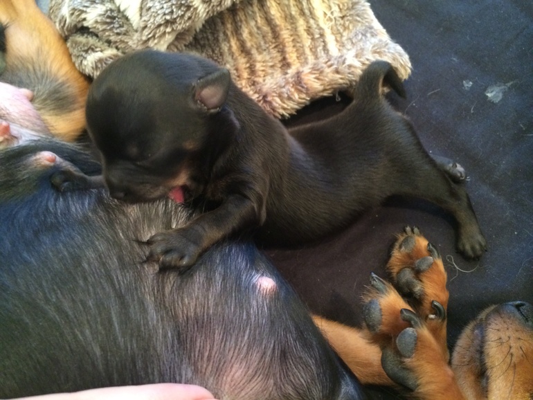 Неделю назад моя чудо спинка родила 2 щенков, но к сожалению, выжил только один. Я конечно плакала, но что поделать... И вот чуток фоток, они такие милые и сладкие, что я тащусь от них каждую минуту)))