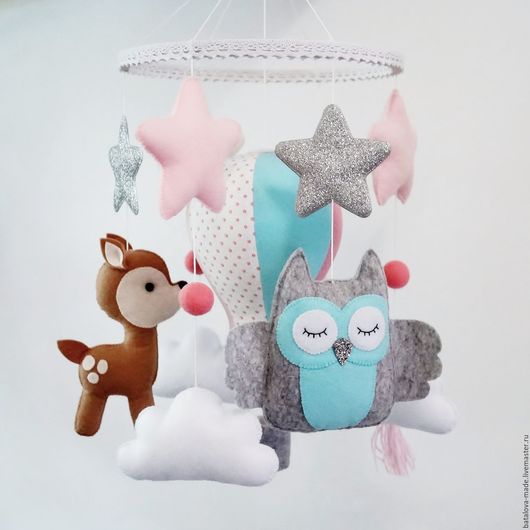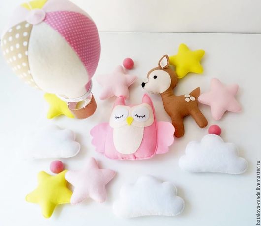 всем доброго дня! Спешу показать вам мою новую работу из фетра)) Мобиль для детской)) выполнен из корейского фетра и хлопка, игрушки размером 12-13 см, воздушный шар - около 20