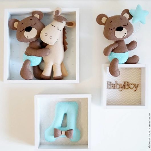 добрый день! Очередные полочки для декора детской комнаты маленького Димы)) Полочки из пластика, мишки - из испанского фетра