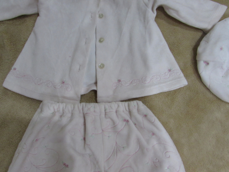 5. Нежнейший костюм-тройка из брючек, кофточки и беретки. Размер ближе к 74.