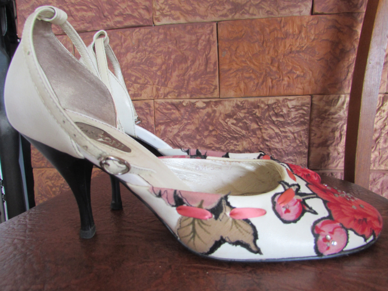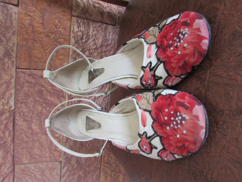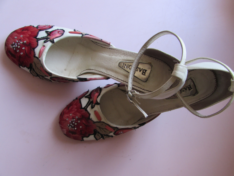 Невероятно красивые туфельки Basconi. Покупались в фирменном магазине несколько лет назад, носились считанные разы. Текстильная аппликация, украшенная стразами (все на месте), атласная лента, удобная, "невесомая" колодка.