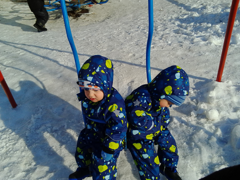 Дети пошли в 1,2 Тимур и в 1,4 Айнур, весят соотв. 12,5 и 13,5 , рост 82 /84. Самое сложное это прогулки выйти и зайти целая история, но я стараюсь выходить гулять и пугать прохожих.
