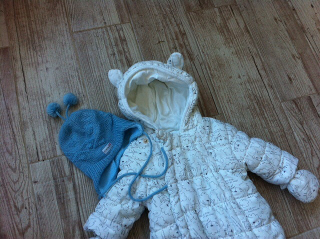 Комбинезон "Ягненок" зимний, детский, цвет - белый, 62 см., Mothercare - 1500 руб.