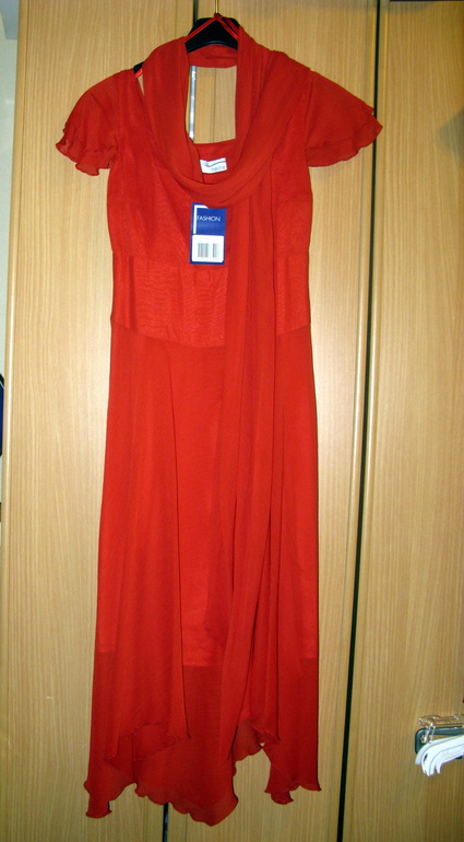 Платье не подошло по размеру. Заказывала по каталогу OTTO из Германии. Платье из шифона на подкладке. К платью прилагается шифоновый пояс-шарф. Полуобхват в груди- 42см, в талии-35 см. Длина около 115-120 см. Цена 1500 руб