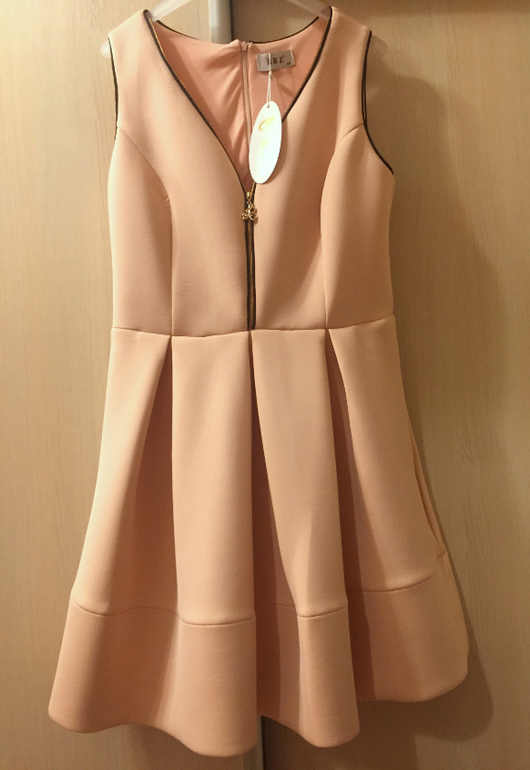 18. Стильное новое платье турецкой марки BRZ. Размер 40, идет на 46 российский. Платье пошито из модной в этом сезоне ткани неопрен цвета пудры. Платье на подкладке. Глубина выреза может регулироваться молнией.