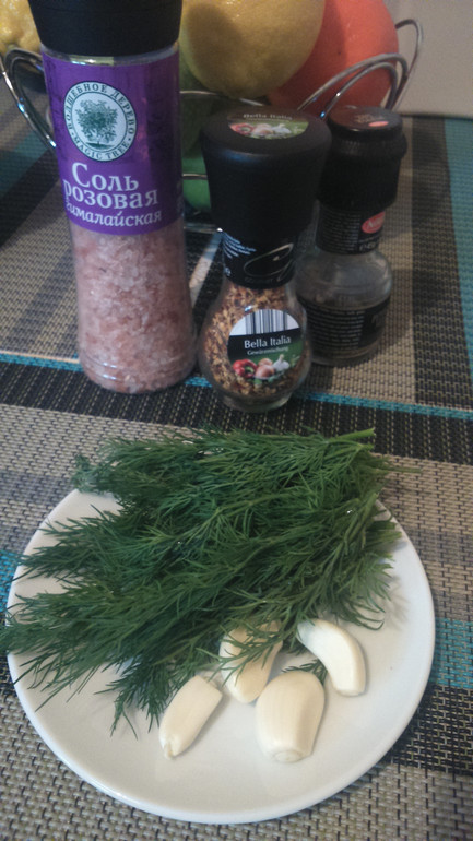 Далее зелень и выжимаем чеснок. Все перемешиваем.