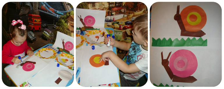 Лепили из пластилиновых "колбасок" улиток, каждый ребенок дал своему детищу имя - Лиза и Ам - они у нас меду собой познакомились, и стали дружить.