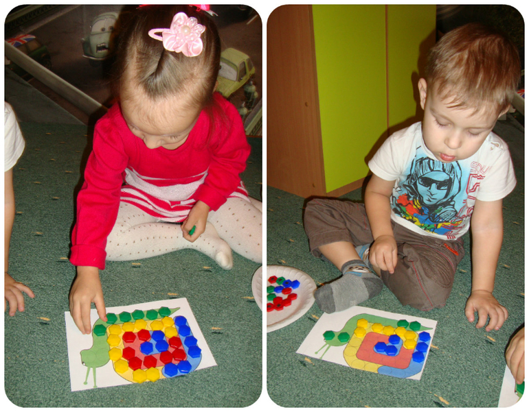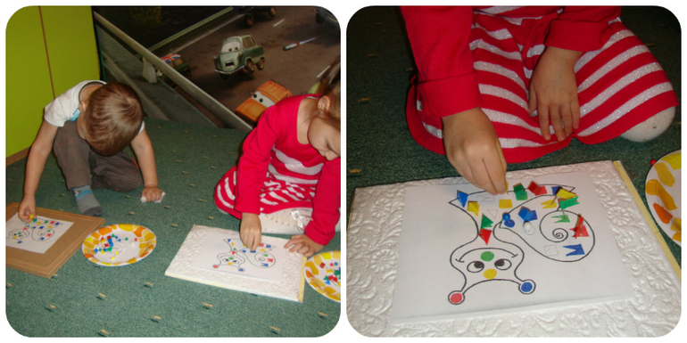Делали аппликацию по образцу.