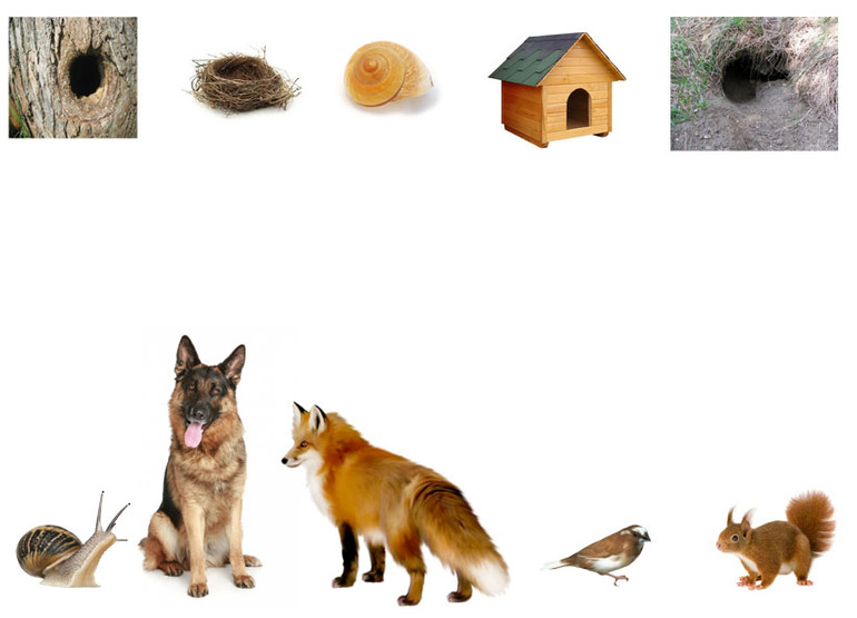 Для более понятного восприятие расселили животных по их домам - улитка у нас проживает в ракушке. (задание сделанное мной - поэтому делюсь с желающими)