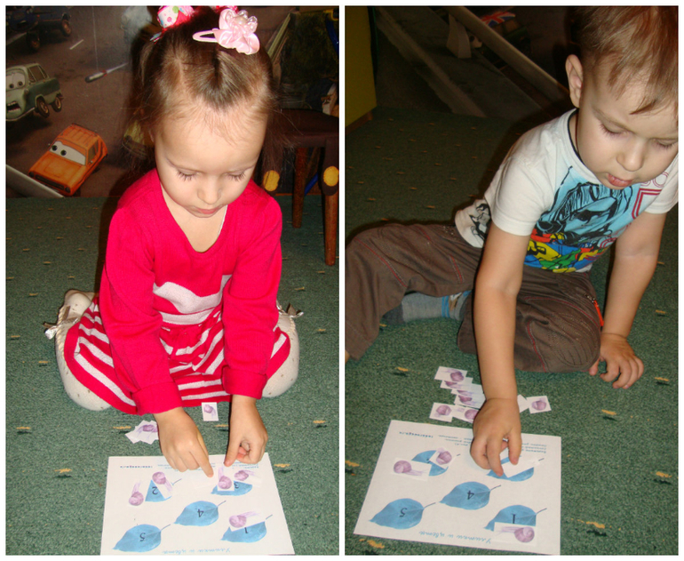 Вышли наши улитки погулять - на листочках посидеть - раскладываем улиток по счету - задание от комплекта "Улитка и виноград "Радуга идей"