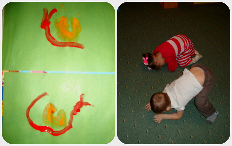 Попытались рисовать улитку отпечатком кулачка - не получилось, и т.к. мой сынуля до сих пор не полюбил такого рода искусство - то процесс сопровождался слезами и мы его быстро завершили.