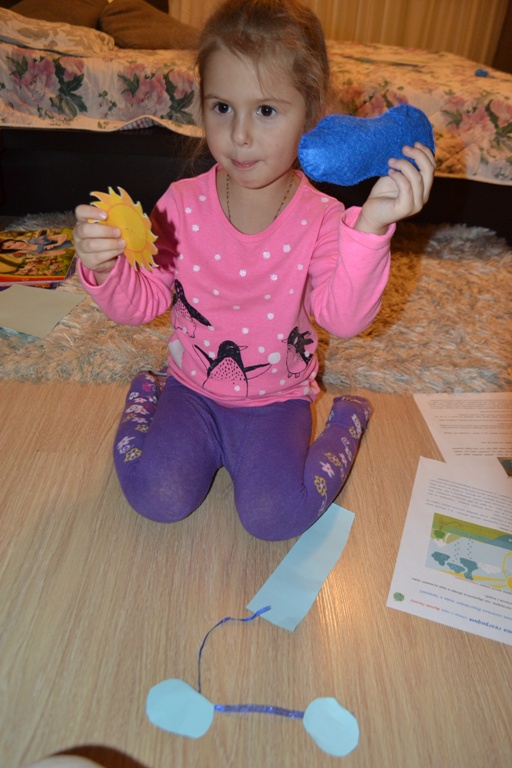 А начали мы с темы облаков. Инсценировали замечательную сказку про капельку и круговорот воды в природе