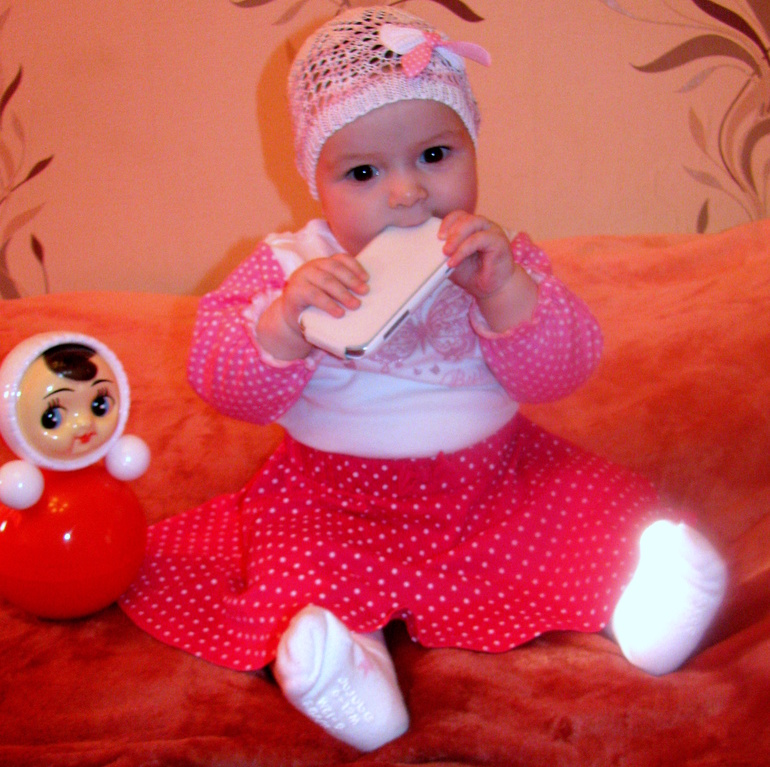 А еще сегодня увидела,что у нее проклюнулись зубики,наконец-то!