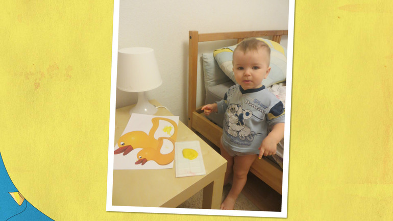 Пластилин перестал брать в рот, катает его по столу, уже хорошо. Ведь раньше я делала шарики и выкладывала на рисунок, а он надавливал. А теперь самостоятельно все старается делать.