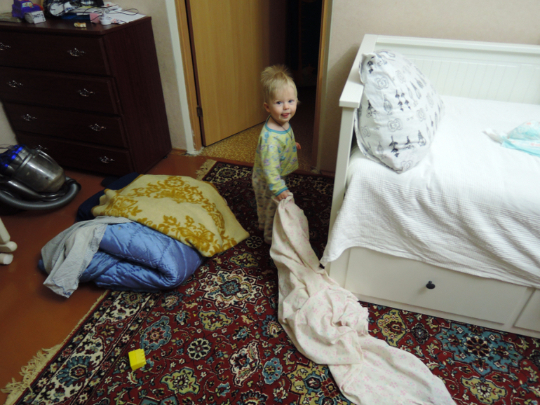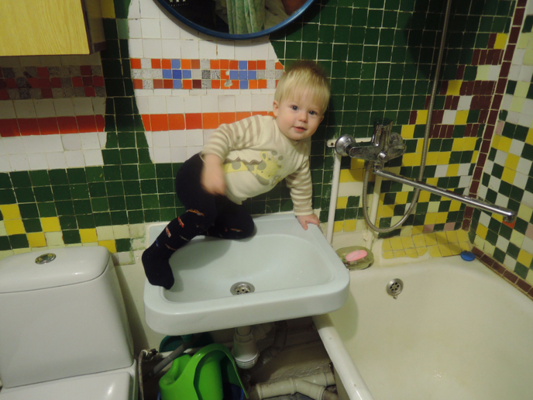 Алешенька везде сует свои маленькие пальчики, выключает мне газ, если не досмотрю, любит ковыряться на балконе, стоять у наших великов, крутить грязные педали. Выкидывает все из кухонных ящиков, если я разрешаю в них залезть))). Нужно же как-то развлекаться заиньке.