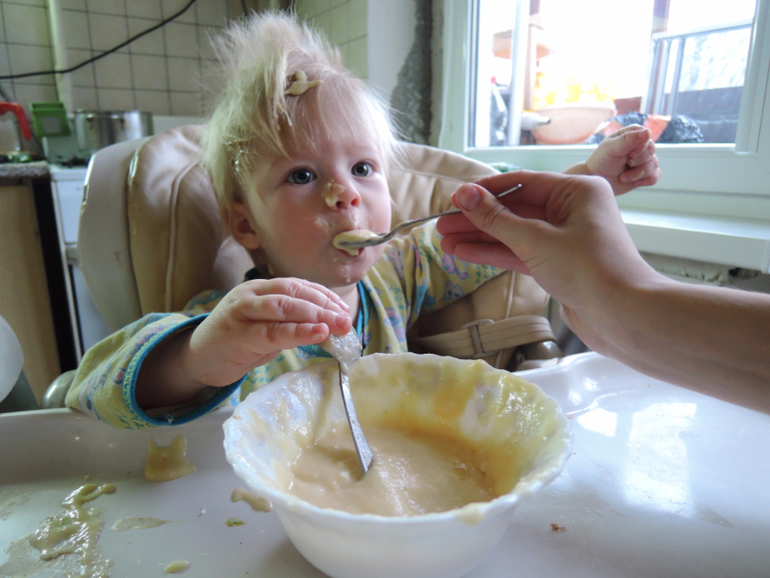 Прикорм идет неохотно. Прям ноет, когда на стульчик для кормления усаживаю. Утром и вечером ест кашу из коробок. Гречку, рис или овсянку. Часто добавляю туда фруктовое пюре, чтоб повкуснее было, так как снова перешли мы на безмолочные каши(((. В обед ест овощи. Раньше с говядиной, сейчас ее не даю, так как выяснилось, что у нас все-таки аллергия на молочку. (На попе вскочило ярко-розовое пятно, которое не проходило недели 2. Мы даже к дерматологу обращались, она с первого взгляда определила, что это раздражение от подгузников