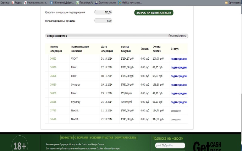 1)информация на Геткэшбеке обновляется с опозданием. Т.е.купили сегодня, а информация появилась только завтра.
