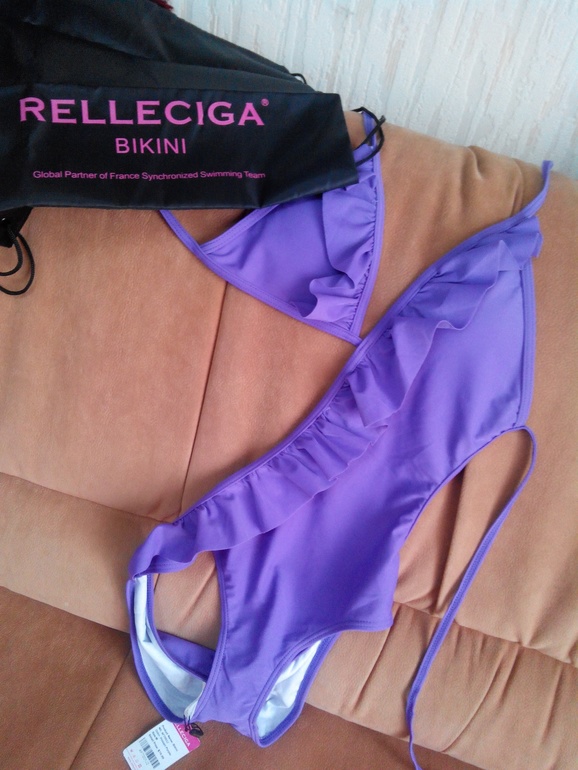 Сегодня пришел купальничек смежный сиреневого цвета. Заказывала на себя, но оказался чуточку маловат, себе побольше буду заказывать.