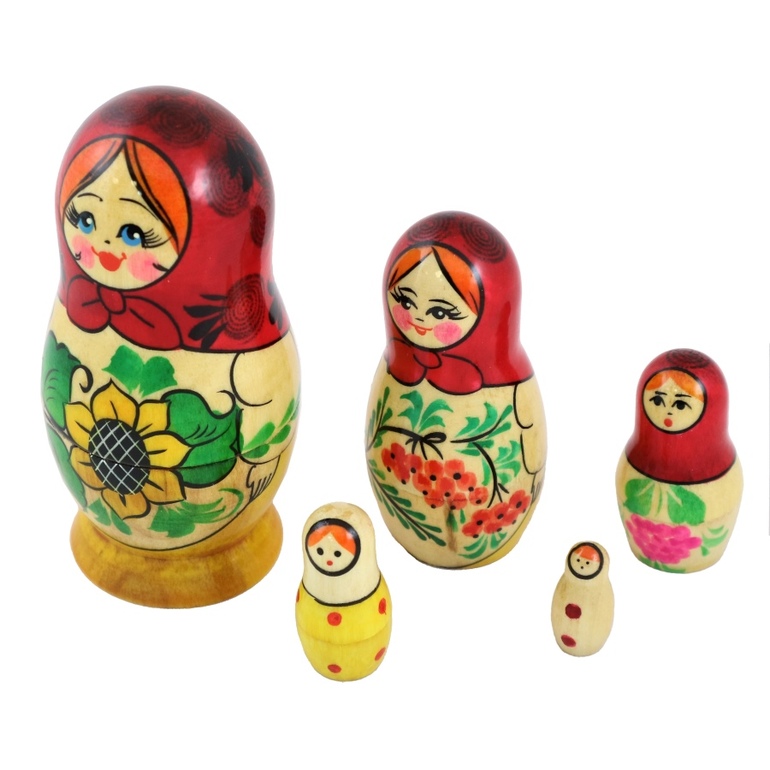 Существует очень много видов матрешек, традиционные с разными цветовыми решениями и стилями росписи, а также посвященные различным историческим личностям. Объединяет их одно - исконно русское народное творчество.
