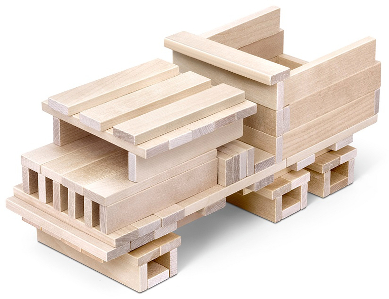Все брусочки тщательно отшлифованы, не имеют острых граней и поэтому абсолютно безопасны для детей. Для создания конструкций не требуется ни клея, ни дополнительных крепежных элементов. Ничего не должно ограничивать фантазию.