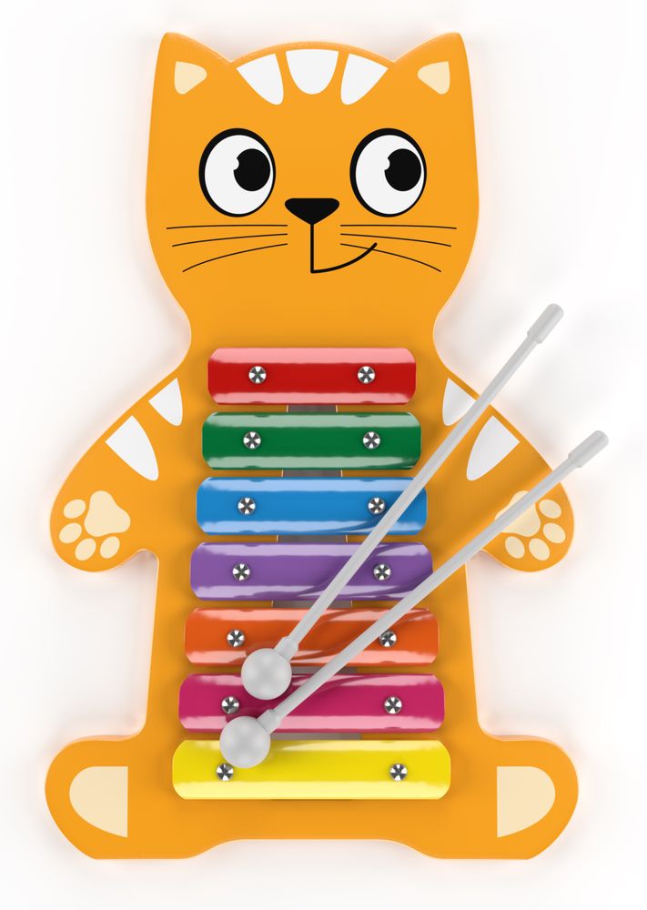 Металлофоны представлены как в классических вариантах в виде прямоугольной доски, так и фигурные - например, в виде мишки или котика.