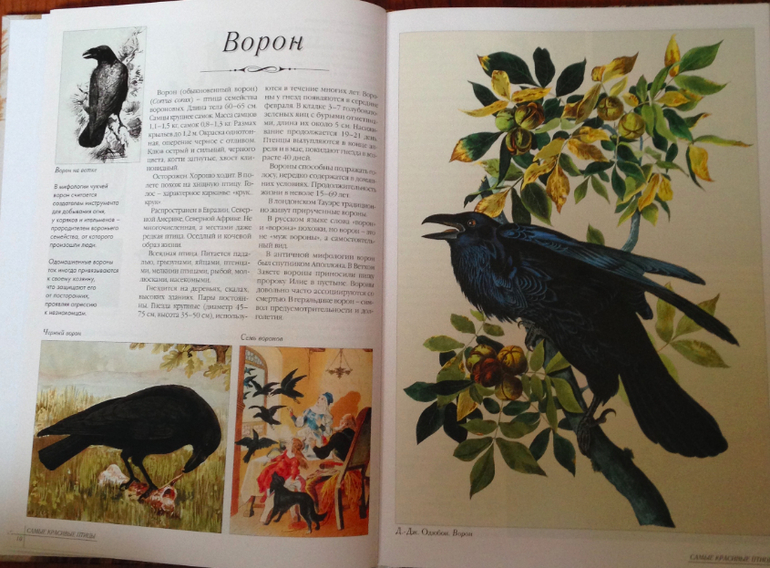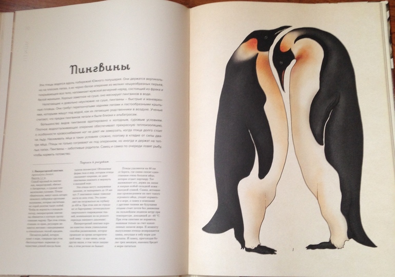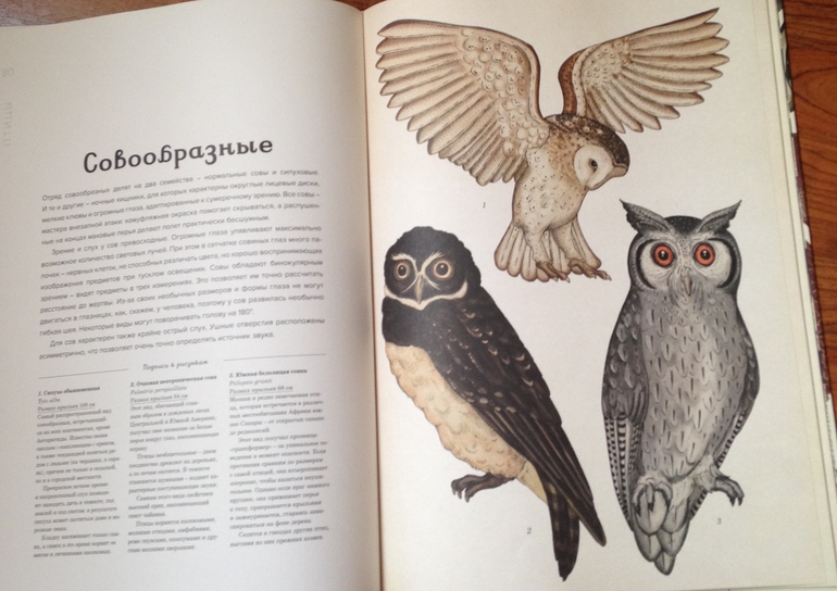 Потрясающая полиграфия, написано по одному и тому же принципу - отряд или семейство, размеры, вес, среда обетания, как гнездятся, кто выводит птенцов, из чего стоят и как строят гнезда. Картинки - картины художников (это для меня наверное)