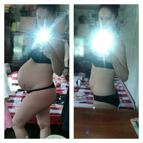 Фото за несколько дней до родов и сегодня, на 15 день после... Как говорила, в этот раз моё тело упорно не хочет приходить в норму))) Вес замер на 67 кг, а надо догнать до 55)))