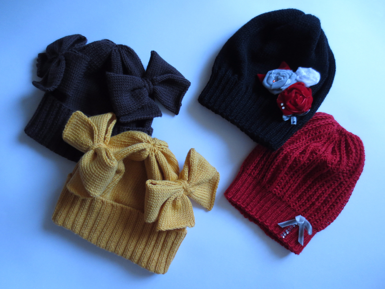 Добрый день. А сколько будет стоить шапочка с бантиками и какой у нее состав? И еще интересует шапочка лапшичкой с помпоном сколько стоит?