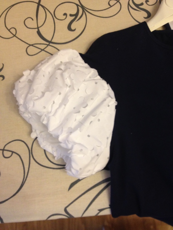 темно-синий трикотажный топ с белыми рукавами фонариком (12 лет) - 2 480 р.