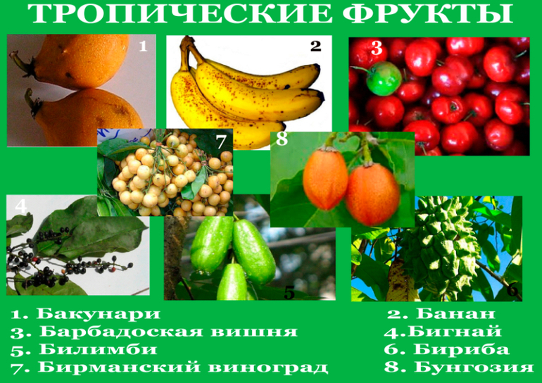 - Тропические фрукты;