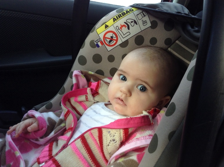 Вера привыкла сидеть в автокресле, которое у нас вместо шезлонга, и теперь я могу спокойно покушать, пока она сидит напротив и рассматривает меня. Подолгу стала веселиться: улыбается, визжит, играется. Голову держит, постепенно начинает контролировать ручки. По выходным ездим с папой в недалекие путешествия, Веруня обычно ведет себя хорошо.