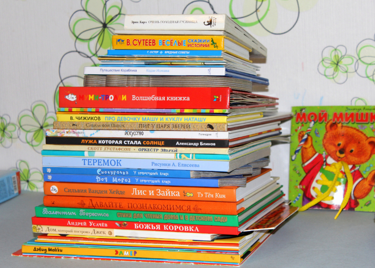 Вот такая стопочка начиталась у неё в апреле.