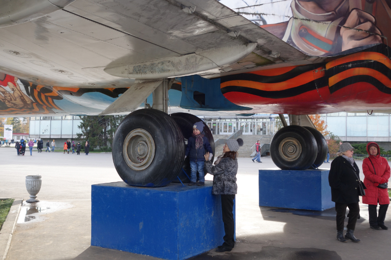 И до самолета тоже дошли. И потрогали колеса и изучили как и куда задвигаются шасси.
